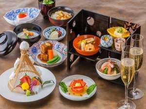 クリスマスに和食はいかがですか?ひとつひとつの盛り付けにもこだわったクリスマスにふさわしい華やかな和会席。「日本料理 羽衣」でご用意しております。 Celebrate Christmas with traditional Japanese cuisine. The vibrant andelegant arrangement of the。