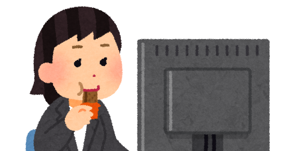 仕事中にお菓子を食べる人のイラスト 女性かわいいフリー素材集 いらすとや。