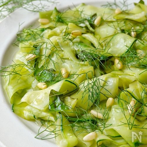 清涼グリーン♪ ヒラヒラきゅうりのガーリック香草マリネ。
