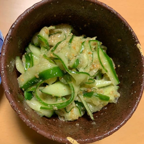 5分だけ ひらひらきゅうりのガリぽん和え。