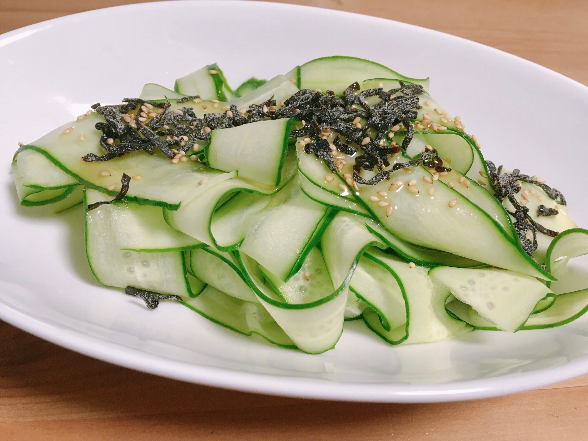 簡単一品*ひらひらきゅうりの塩昆布のせ。