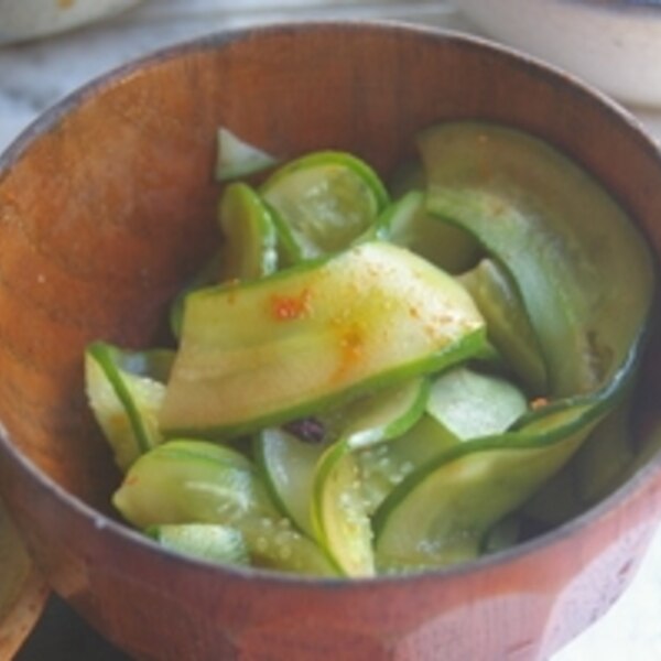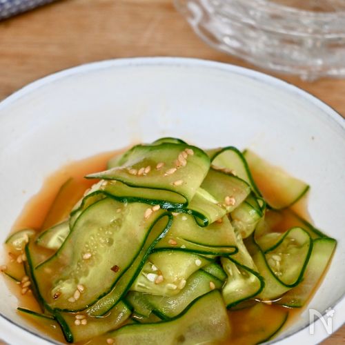 水キムチ風♩ひらひらきゅうりのピリ辛和え。