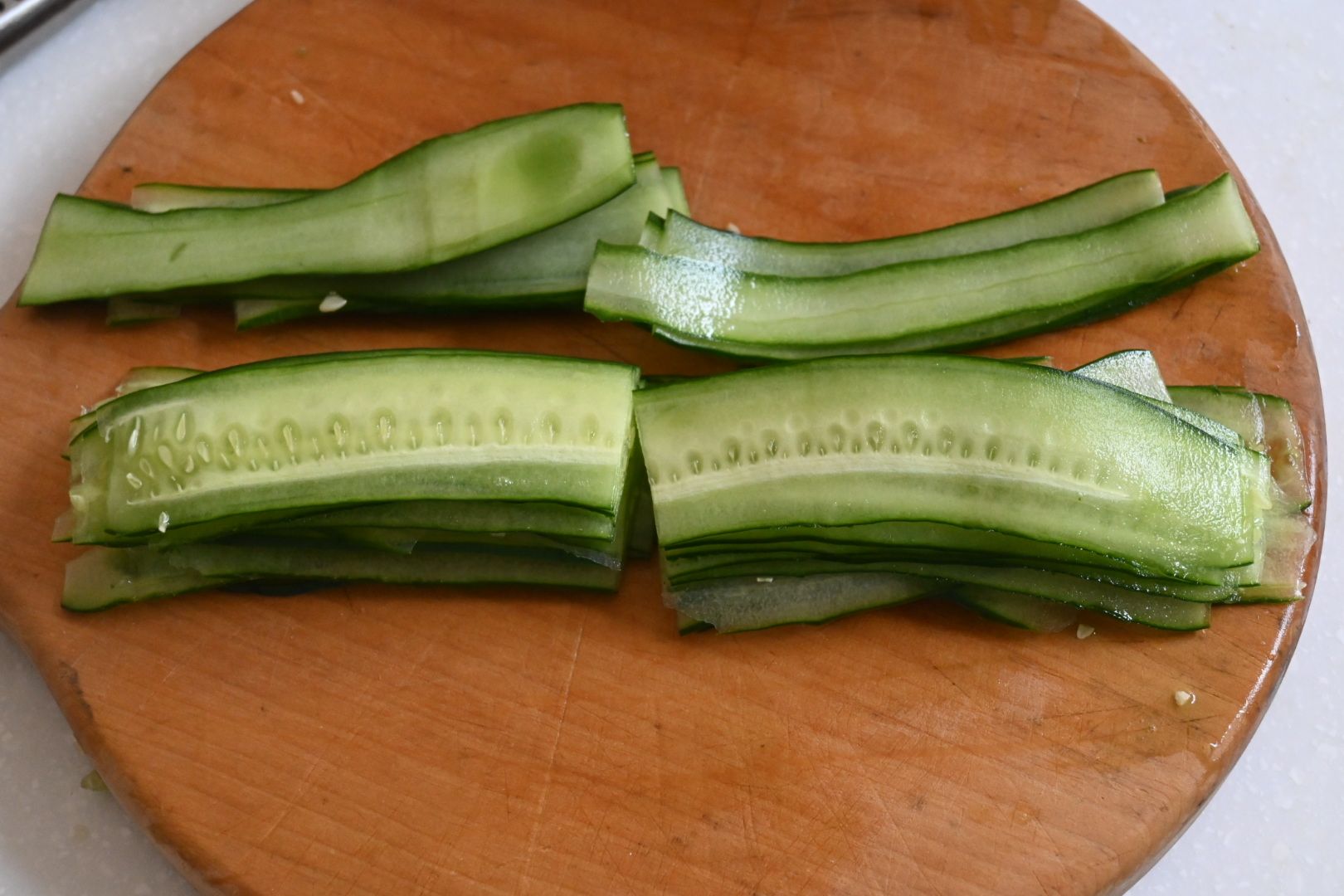 きゅうりをピーラーでヒラヒラ~サラダ。