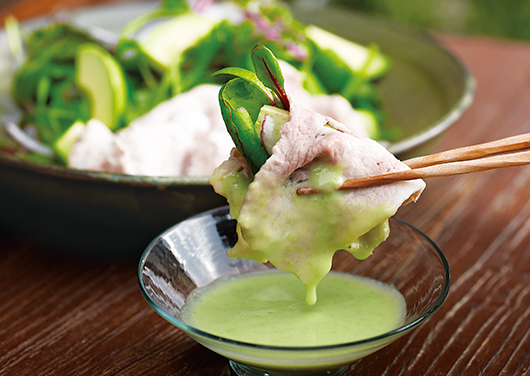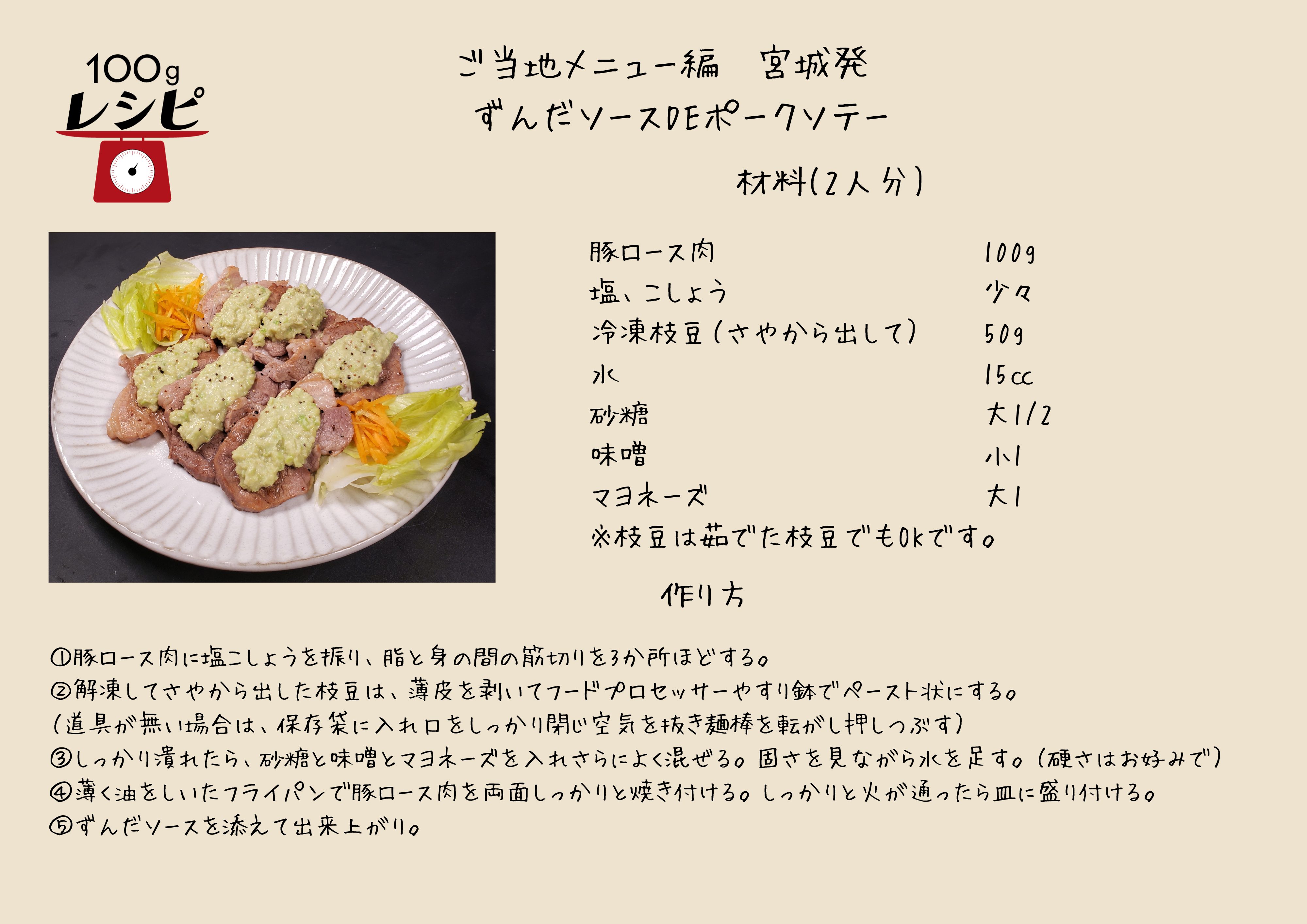 100g レシピ「ずんだソースDEポークソテー」を公開株式会社ニュー・クイック。