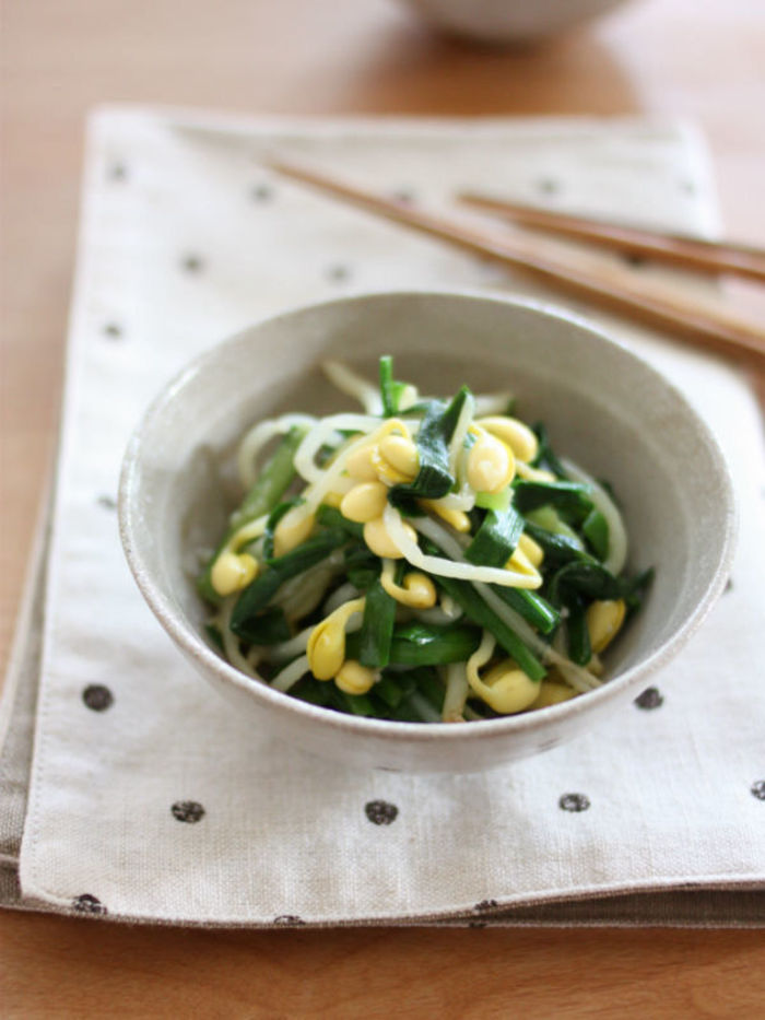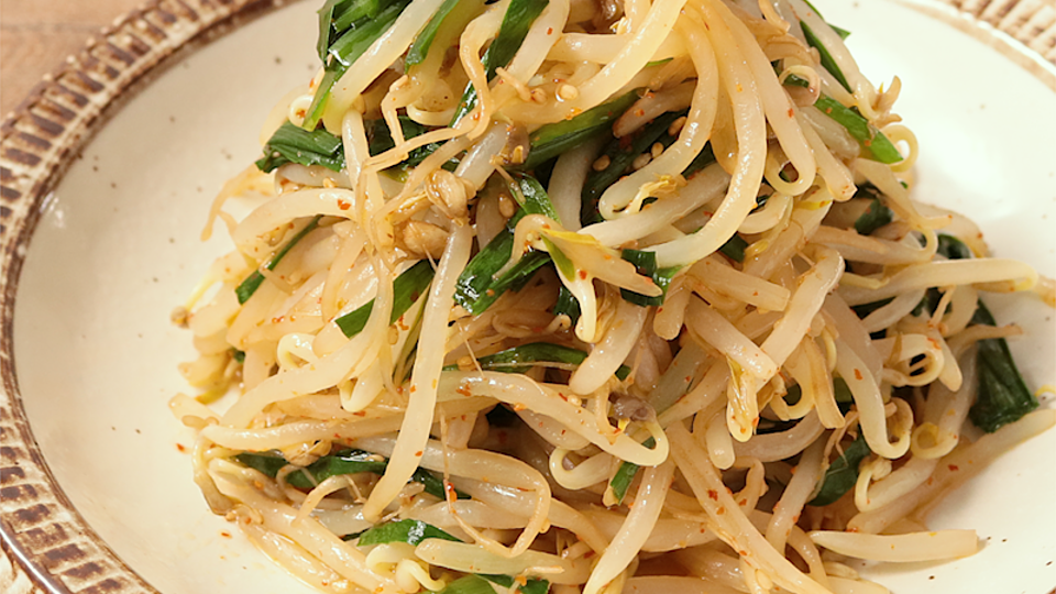 レンジで簡単♪もやしとニラのうま塩ナムル。