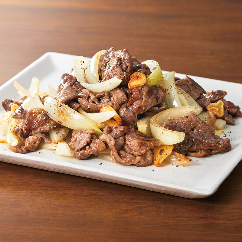 牛肉と玉ねぎのバターガーリックソテ。