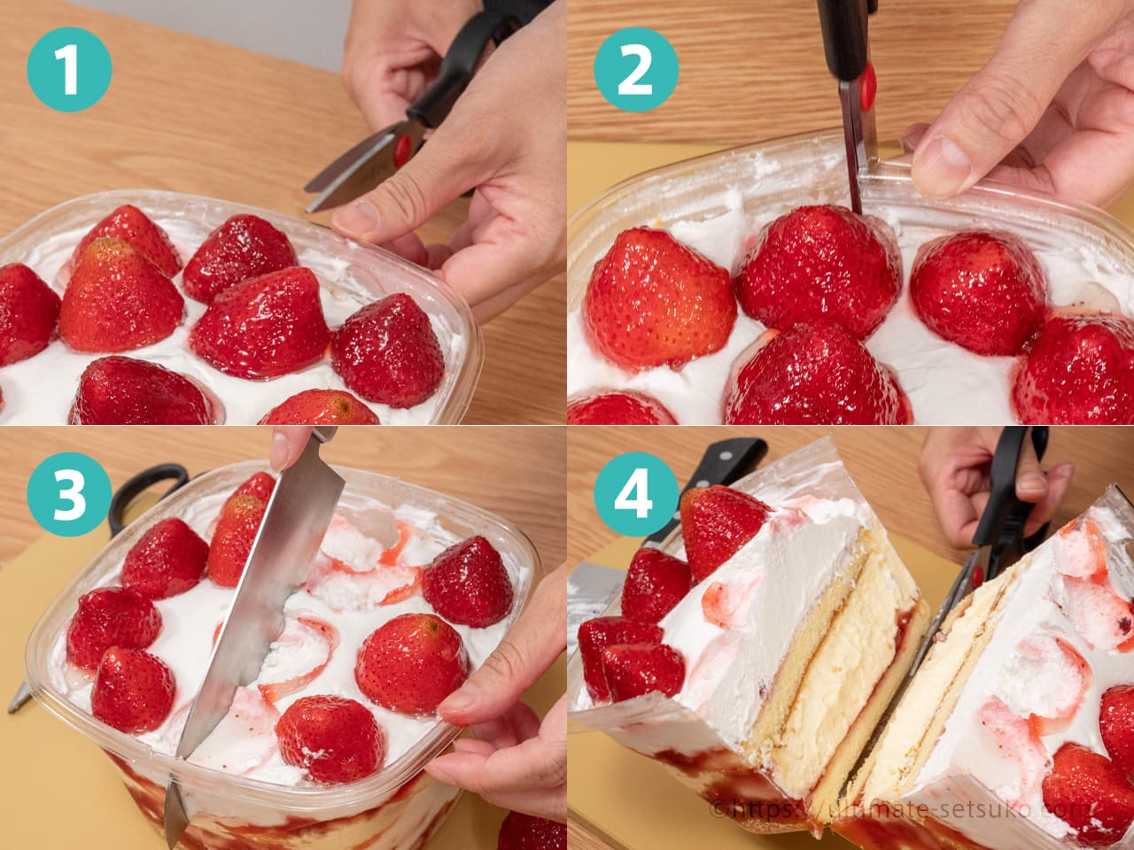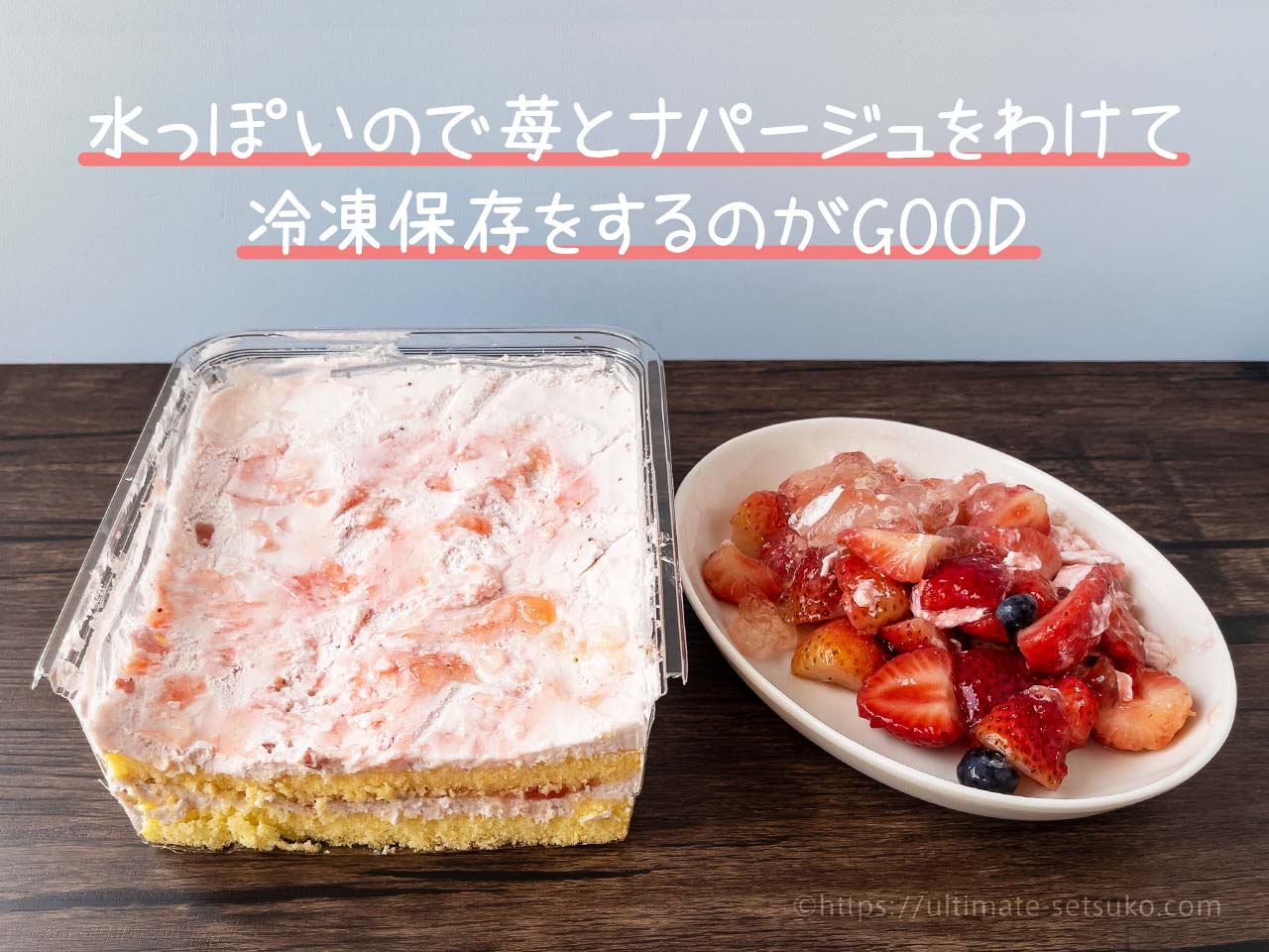 コストコのダブルストロベリーケーキの切り方と冷凍保存を解説。