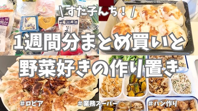 1週間分のまとめ買いと平日楽する作り置き✊!今週もお野菜たっぷりであれこれ作りました🥦🍄🟫🥕♪家族と自分の食べたいものたくさん作って大満足🌟 ロピア 業務スーパー 餃子 パン作り 料理動画。