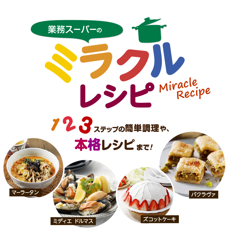 ミラクルレシピプロの品質とプロの価格の業務スーパ。
