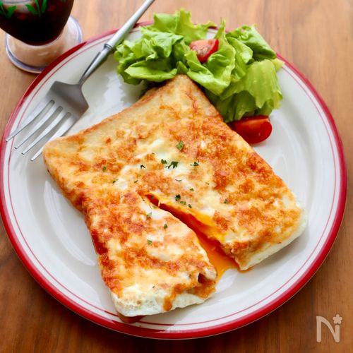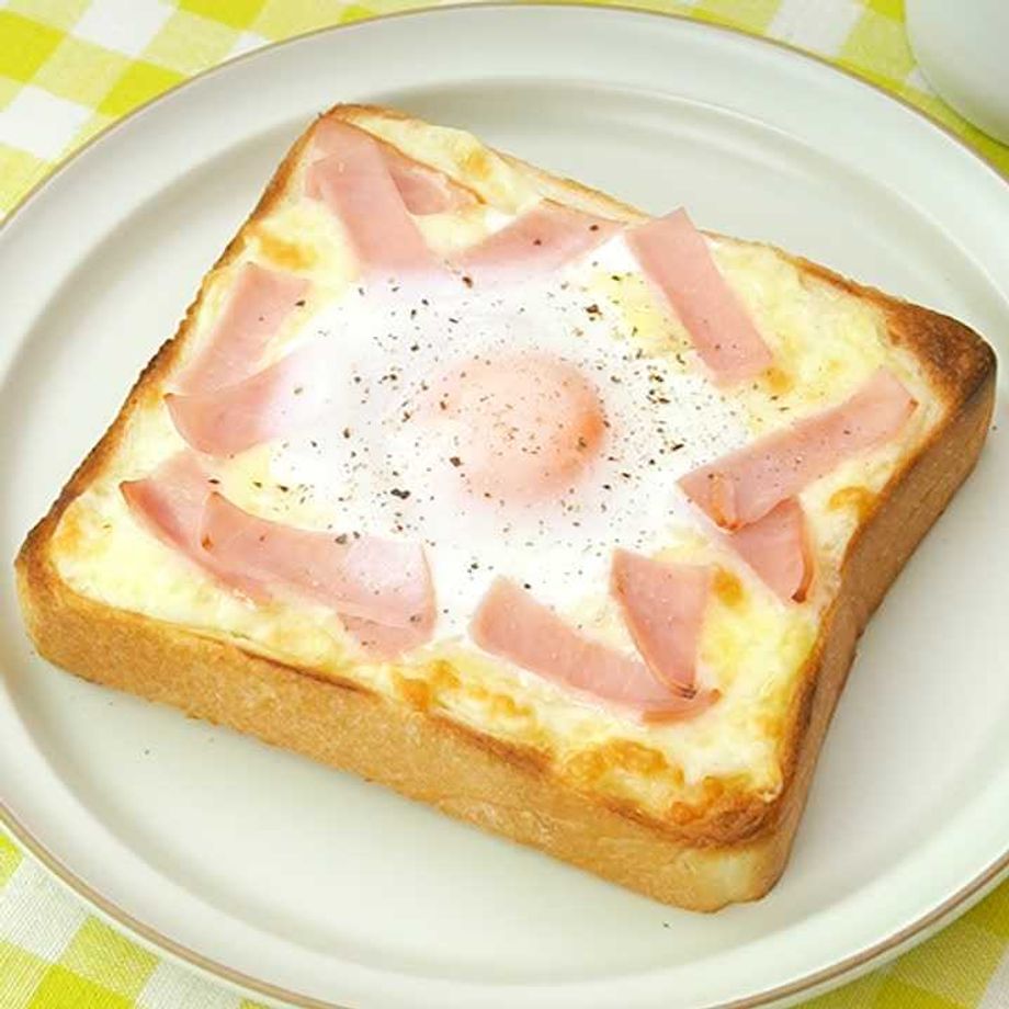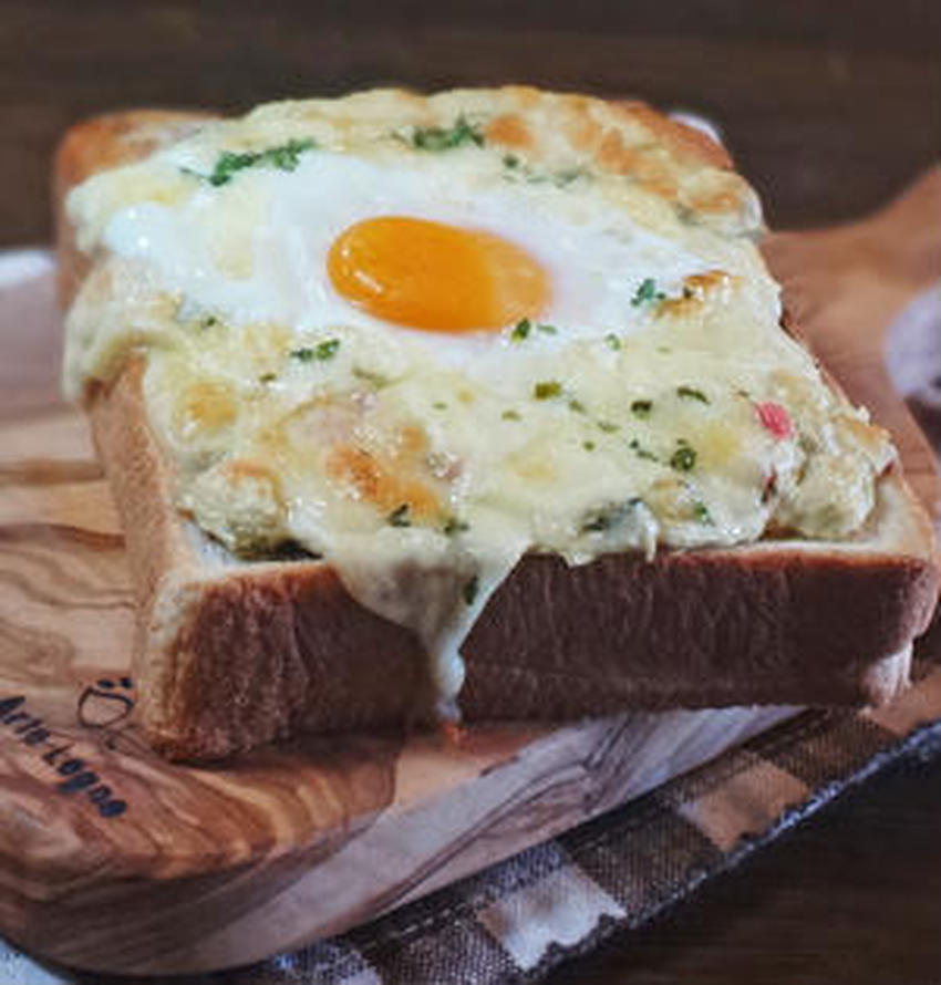 とろとろ半熟卵の巣ごもりトースト 朝シャン レシピ創味食品。