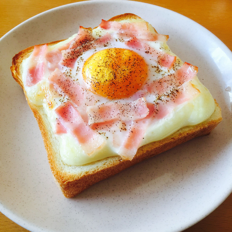 簡単朝ごはん! とろ〜りベーコンエッグトースト。