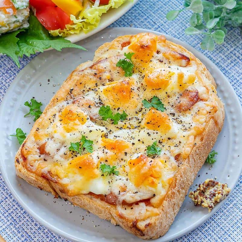 とろとろ半熟卵がたまらない♪簡単カルボナーラトースト 朝ごはんに。