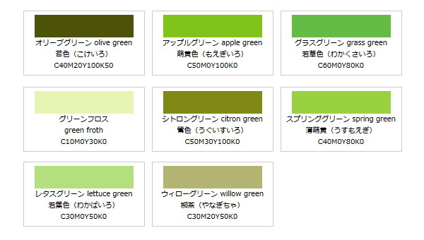 抹茶色の配色パターン 色の組み合わせ- 原色大辞典。