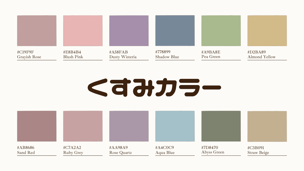 コピペOK 黄系くすみカラーの名称とカラーコード一覧ヒビラボ。