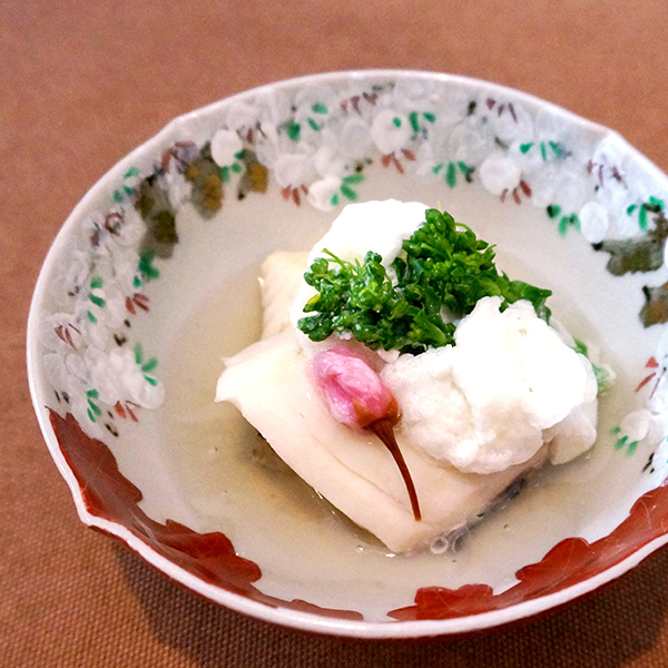 高野豆腐とふきの淡雪あん。