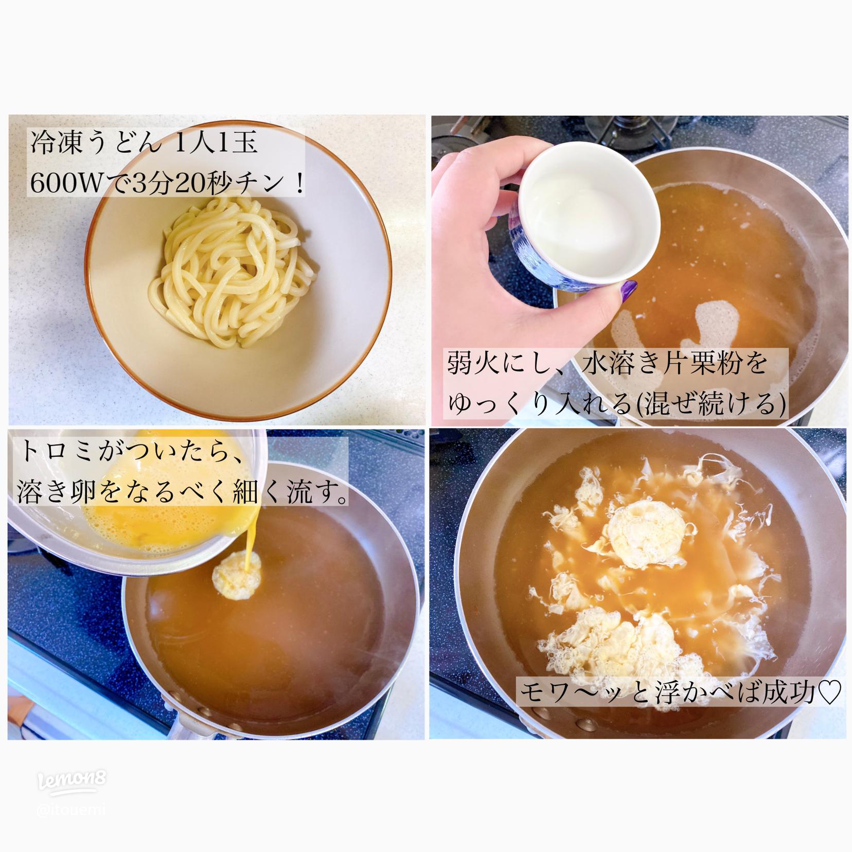 片栗粉なしで作るふんわりかきたまうどん簡単レシピ。