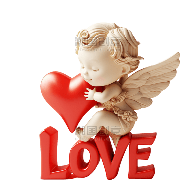 创意3D卡通可爱的小天使情人节丘比特LOVE图片_潮国创意。