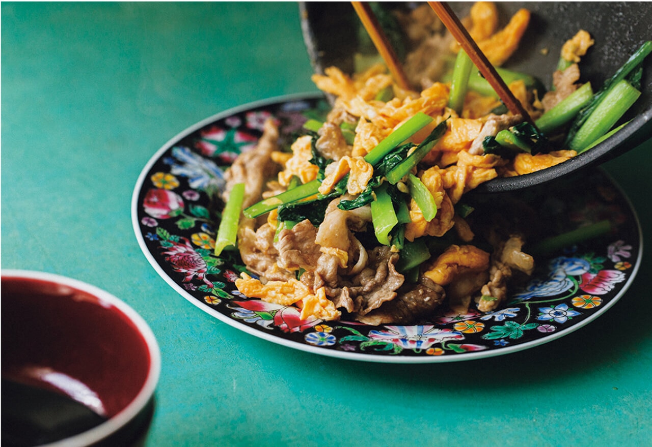 「豚こま、卵、小松菜のオイスター炒め」レシピ 今井 亮さん。
