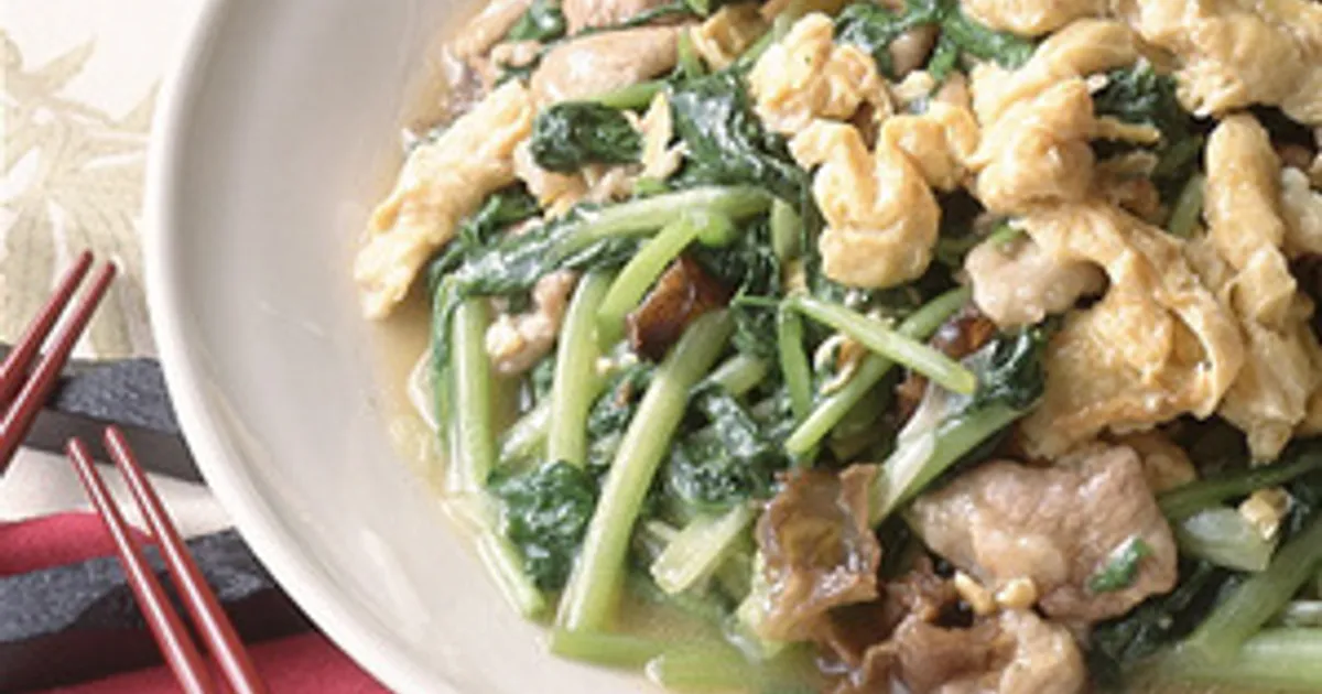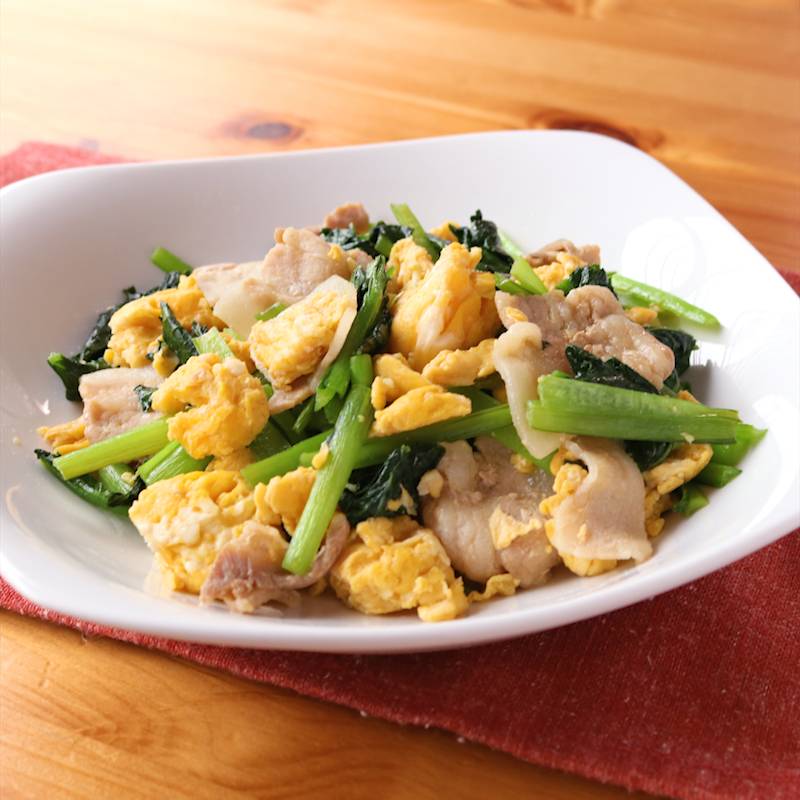 豚バラ肉と小松菜の中華風卵炒め。