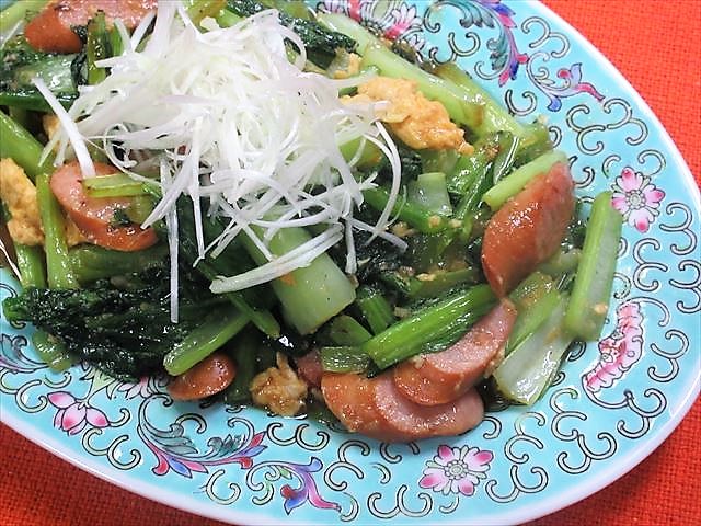 じゃがいもと小松菜とウインナーのオイスターソース炒め。