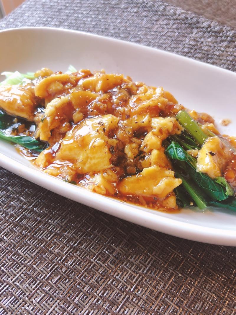 おいしさメイン級 小松菜とふわふわ卵のオイスター炒め。