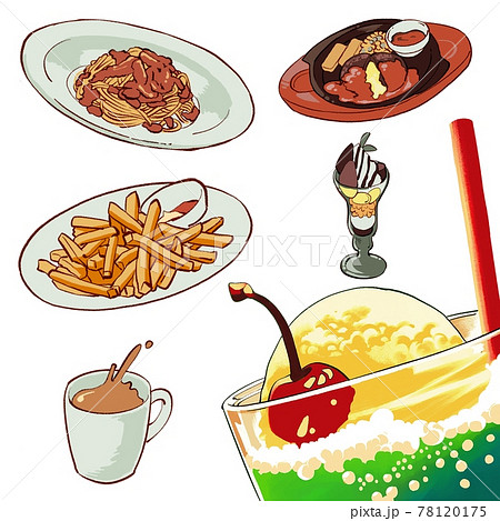 レトロな喫茶店の食べ物 かわいい手描き風イラストのイラスト素材86388653- PIXTA。