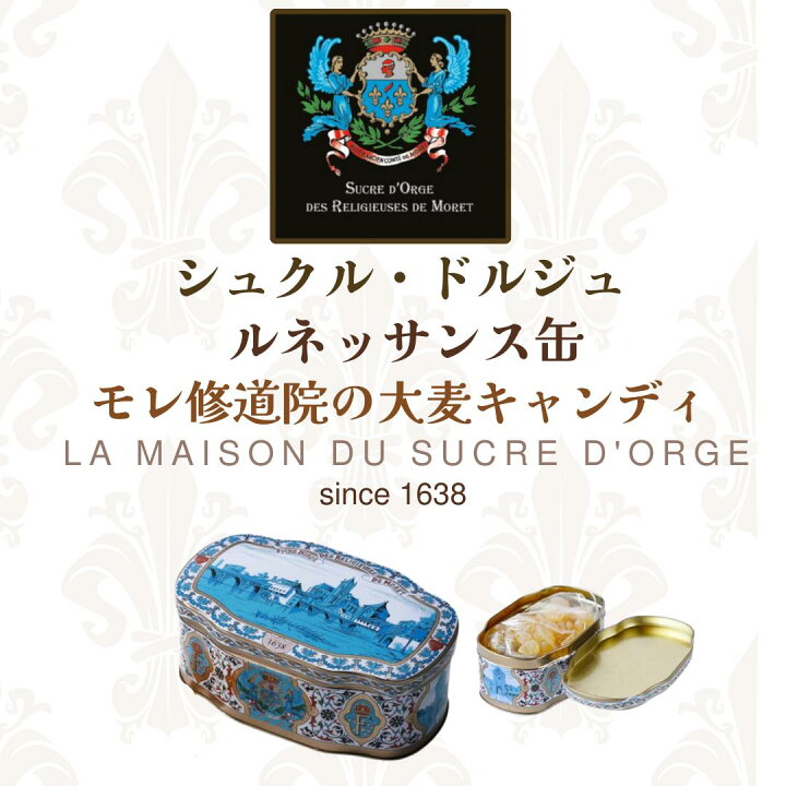 楽天市場 シュクルドルジュ ルネッサンス缶 伝統フランス菓子 大麦キャンディ 美味しい飴 喉に優しい 甘い 大麦 キャンディ 飴 あめ アメ 上品プレゼント 贈り物 女性 女の子 もらって嬉しいお菓子 お菓子 おやつ オシャレプレゼント 美味しい おしゃれお菓子。