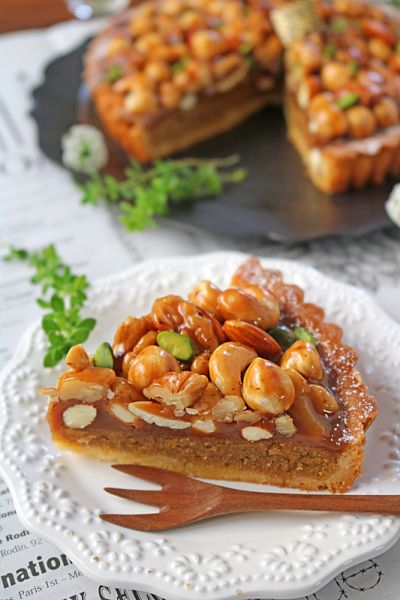 キャラメルナッツタルトのレシピ recette de tarte fruits secs caramelLa maison du gateau。