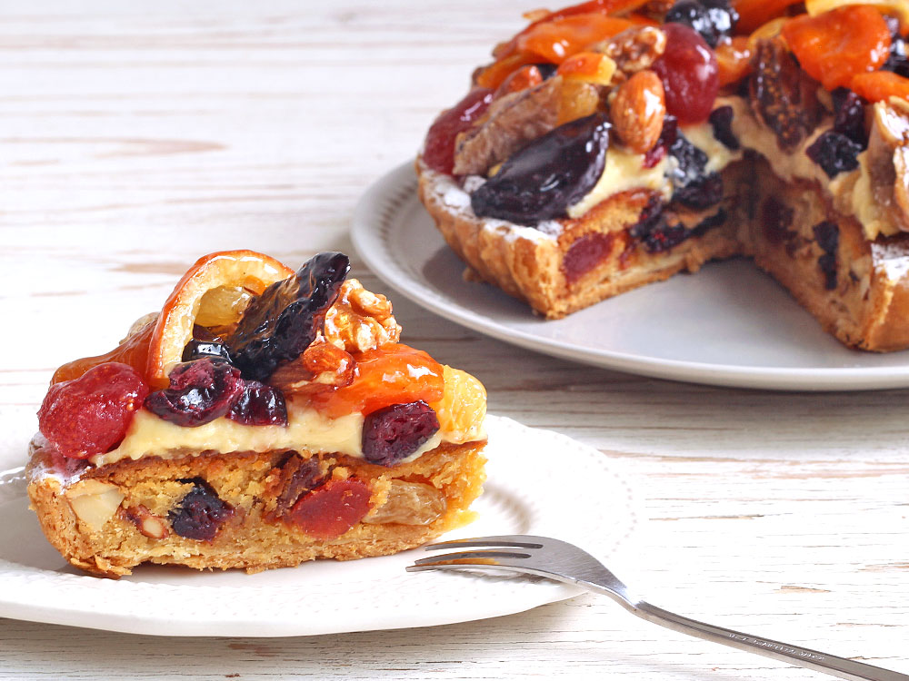 ドライフルーツとナッツのタルト。
