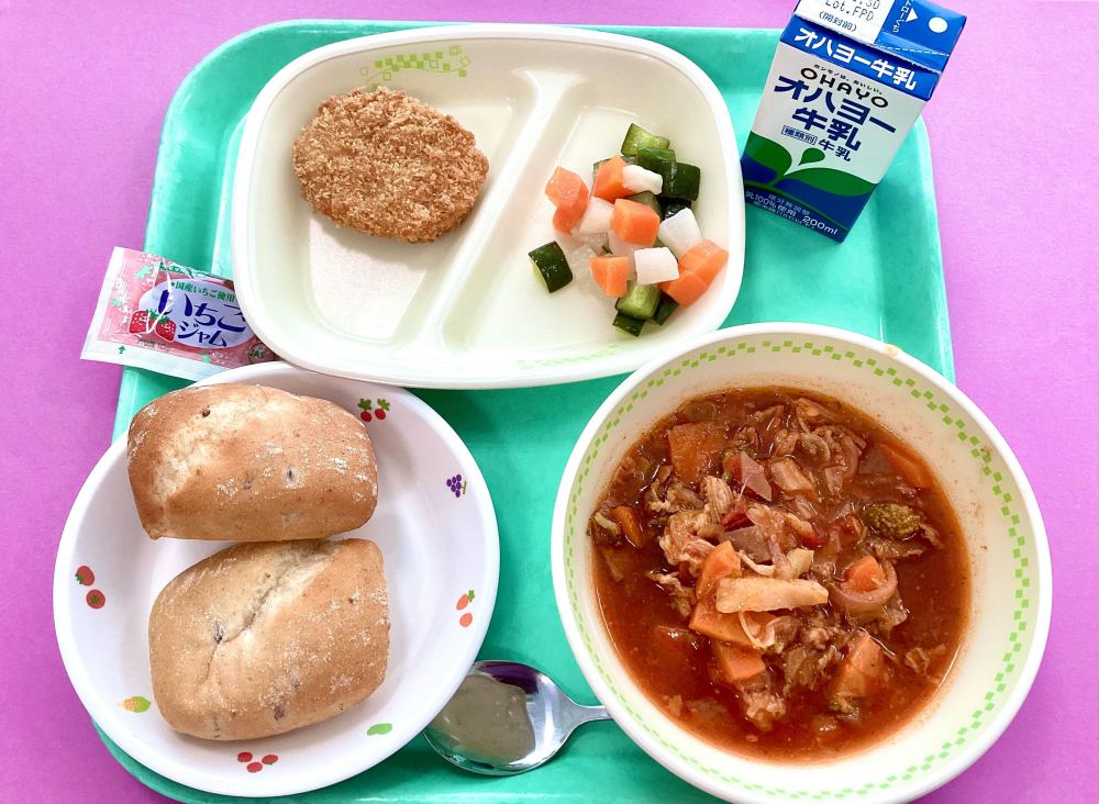 新メニュー「ボルシチ」今日の給食輝け!ぬまべっ子。