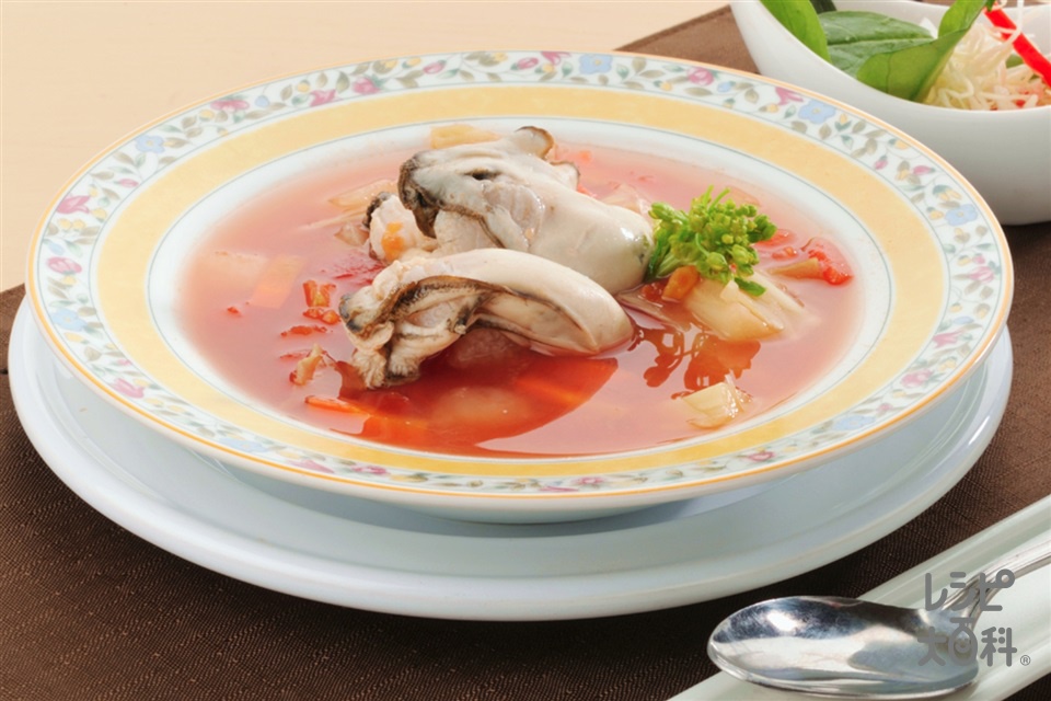 カキのボルシチ風の献立 副菜:エッグソーセージサラダ、副菜:セロリとりんごの浅漬け 献立・メニュー 味の素パーク たべる楽しさを、もっと。