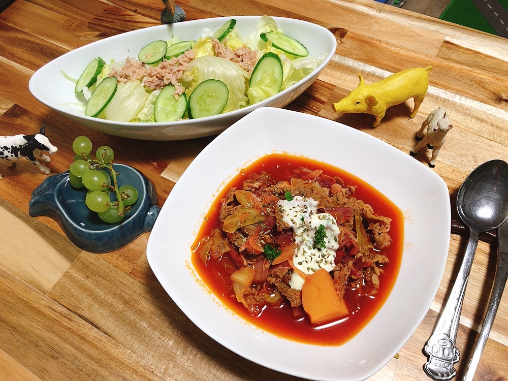 今日の夕食の献立は 簡単ボルシチメニューPine Lake のある街で。