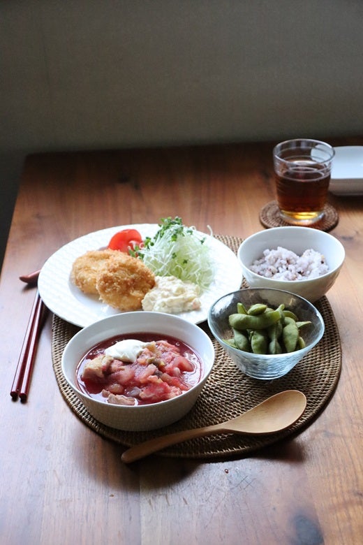 ビーツピューレでボルシチ と えびカツ・献立。miyukiのスマイルキッチン。