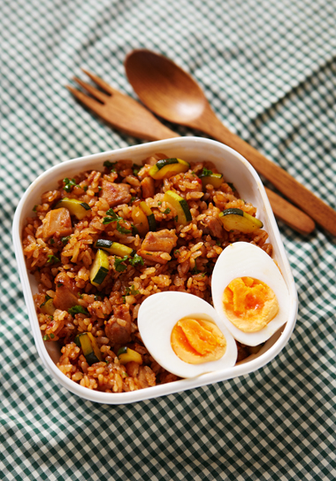 お弁当中 〜obento tyu〜: カレールーで簡単!!夏野菜たっぷりドライカレー弁当。