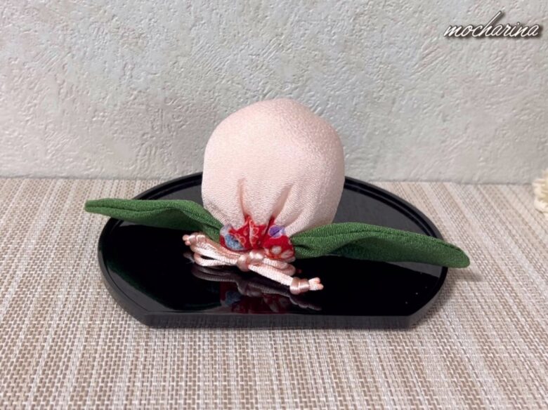 ちりめん細工 可愛くて簡単に作れる「桃」のつるし飾り⑤ 100均mocharina*布あそび。
