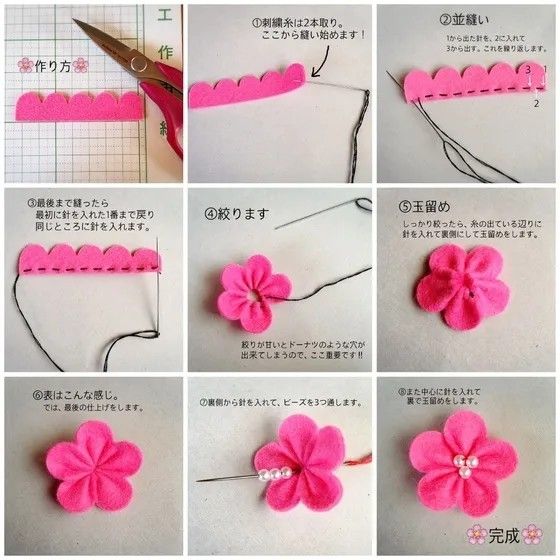 切って貼るだけ 型紙なし!フェルトで作る桃の花 - YouTube。