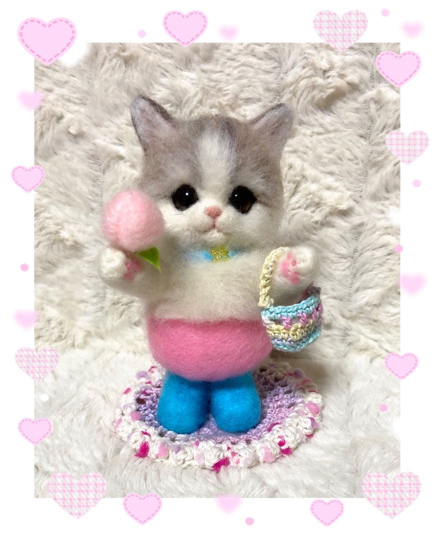 羊毛フェルト。猫。桃。オーダーNo.10 羊毛フェルト 猫 ぬいぐるみ 子猫 かんたん! たまご型ね。