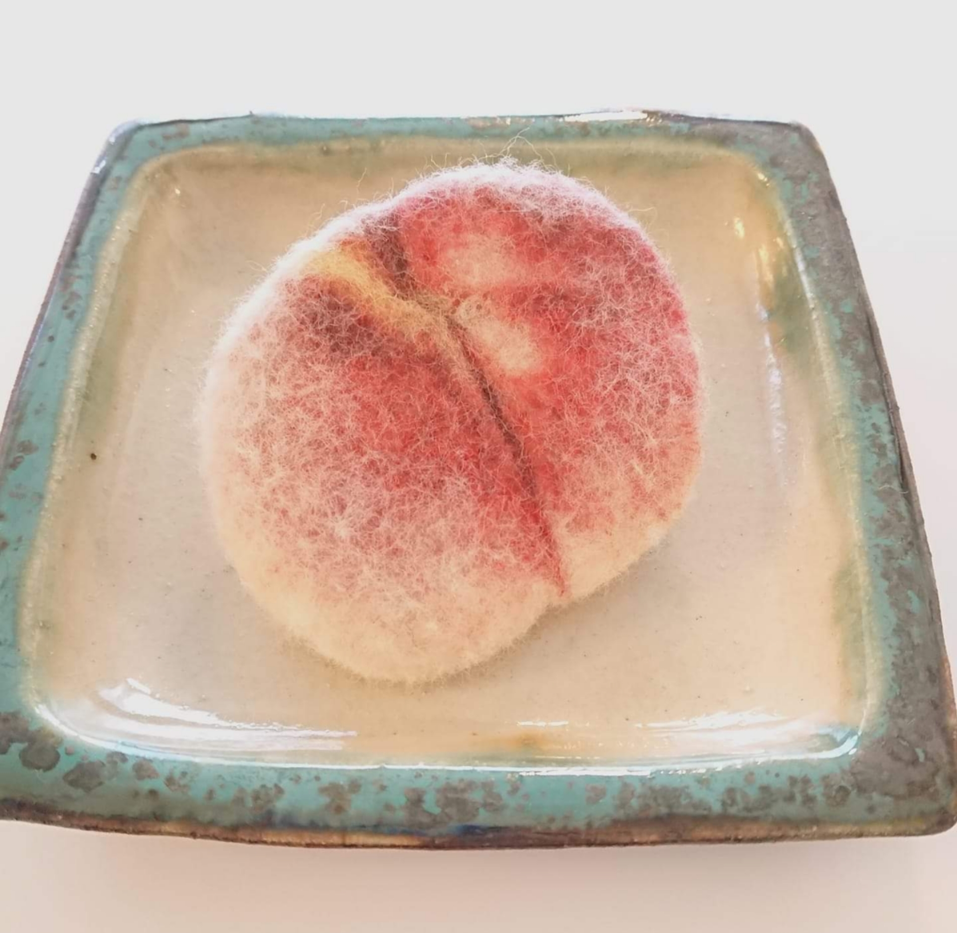 羊毛フェルトの平面桃、よーく冷して食べてね。マチル 平面羊毛フェルト ~動物と食べ物たち~。