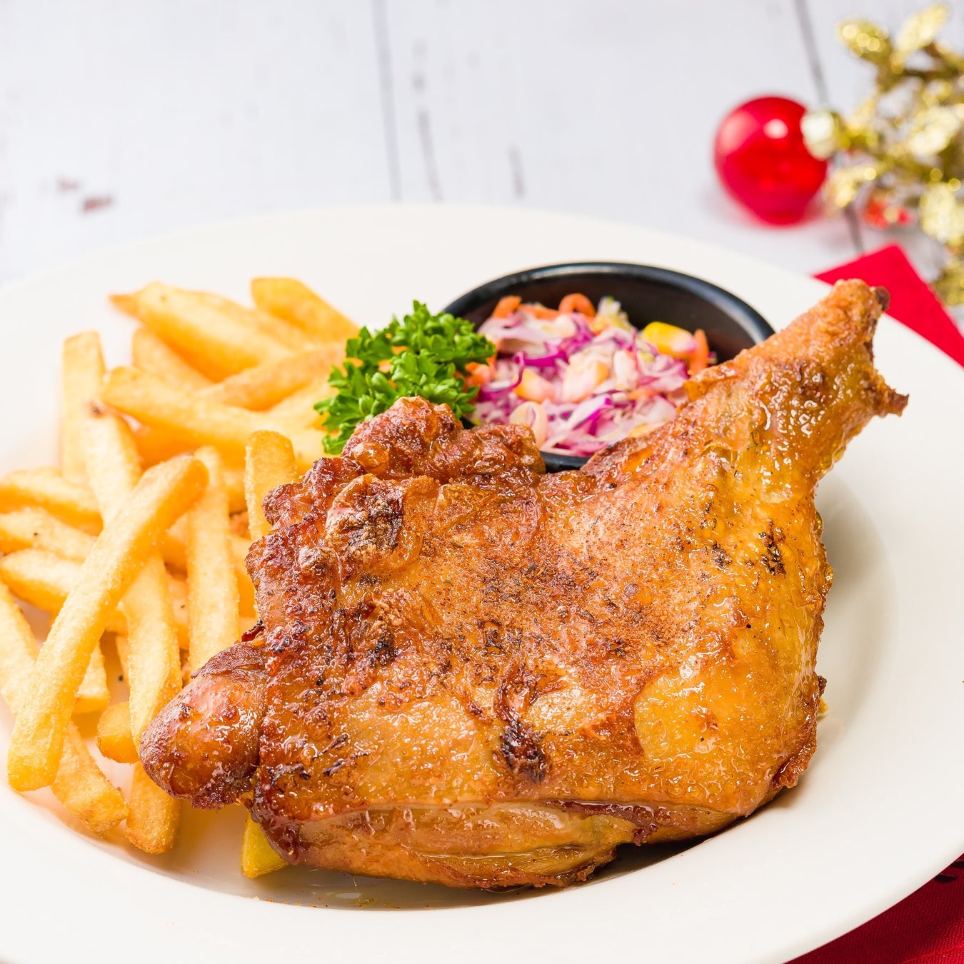 クリスマスチキンの盛り付けのコツ~色合いを意識したい│宮崎地鶏と燻製専門店スモーク・エース。