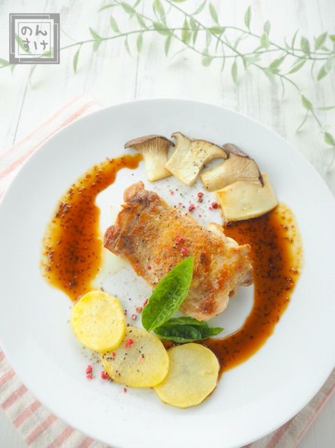 レシピ チキンソテーのマスタード照り焼きソース添え : のんすけのおいしいくらし。