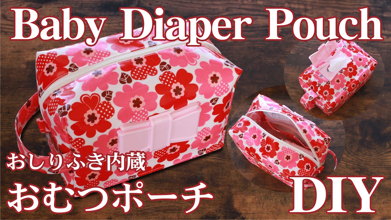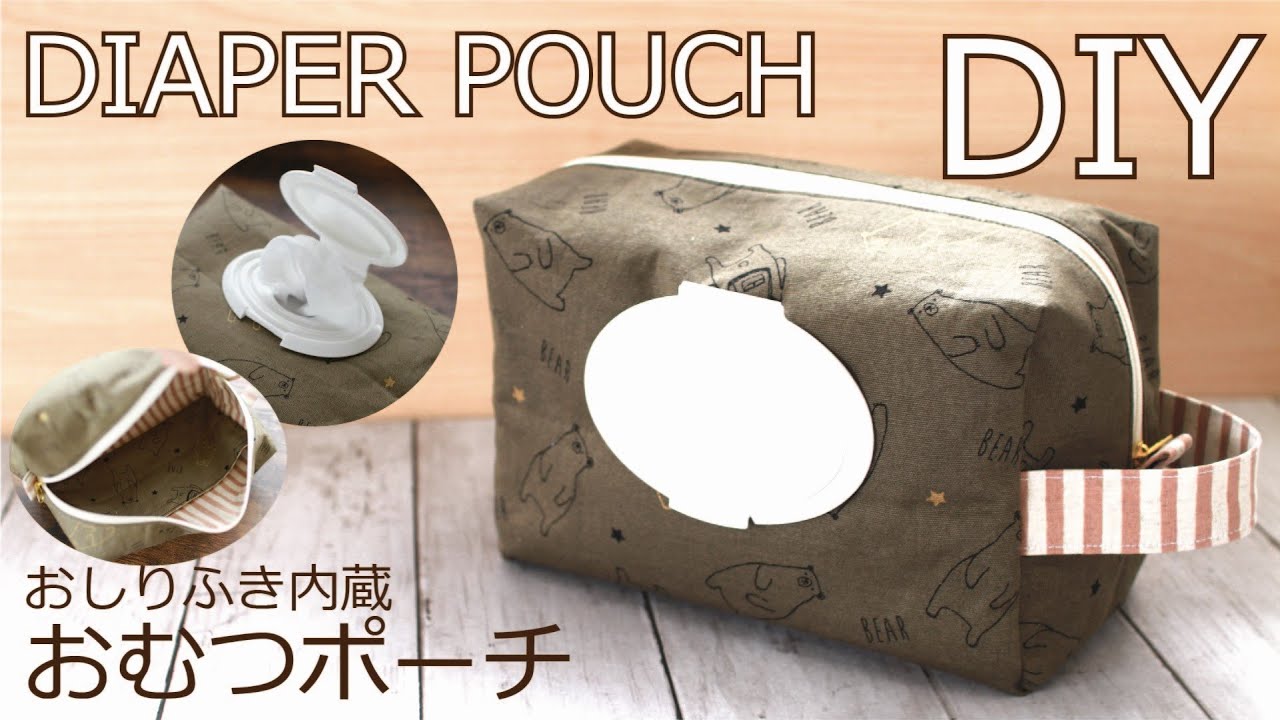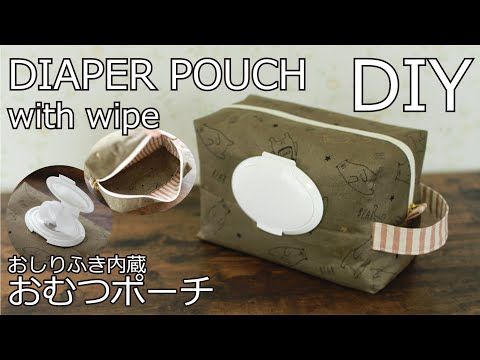 おしりふき内蔵おむつポーチの作り方 持ち手裏地付き Diaper pouch - YouTube。