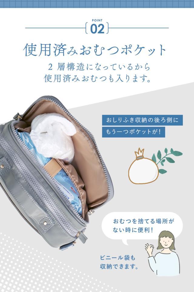 おむつポーチ おしりふき内蔵 ショルダーバッグ レディース コンパクト 撥水 軽量 ママカル 抗菌防臭。