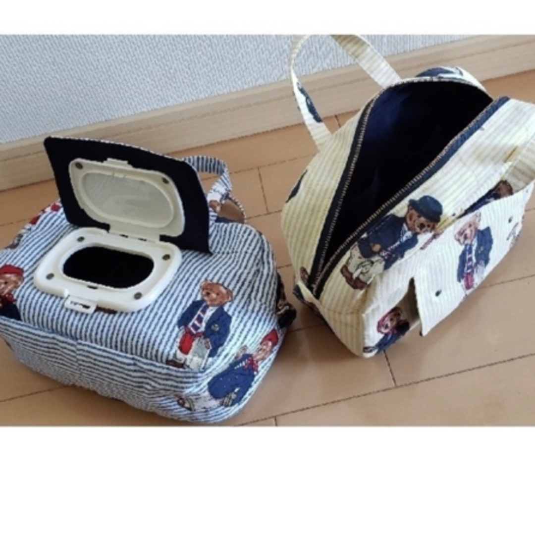 おむつポーチ 取手付き おしりふき内蔵可能 くま柄 ドット柄 ハンドメイド - メルカリ。