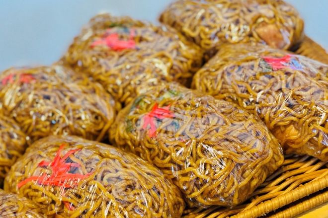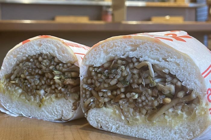 焼きそばをラップで包んだの? パンが見えないほどの大盛りドッグ。