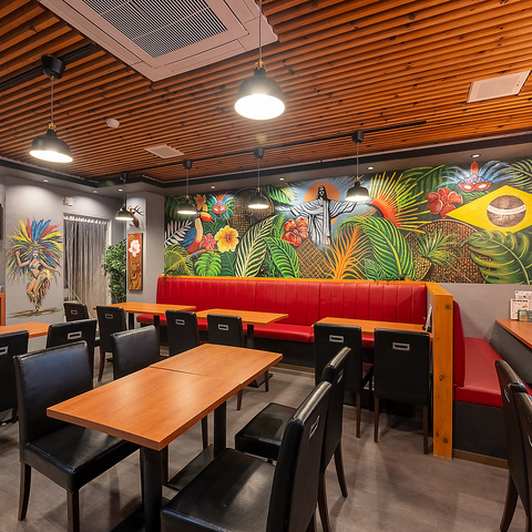 Akiko Sasakiシュラスコキング 新宿店 ジューシーな本格シュラスコを堪能。特に、テーブルでカットしてくれる牛ランプの赤身が美味しい!🥩店内は、ブラジルの情熱を感じるカラフルなウォールアートが。サラダやガーリックライス、ポンデケージョなど豊富な。
