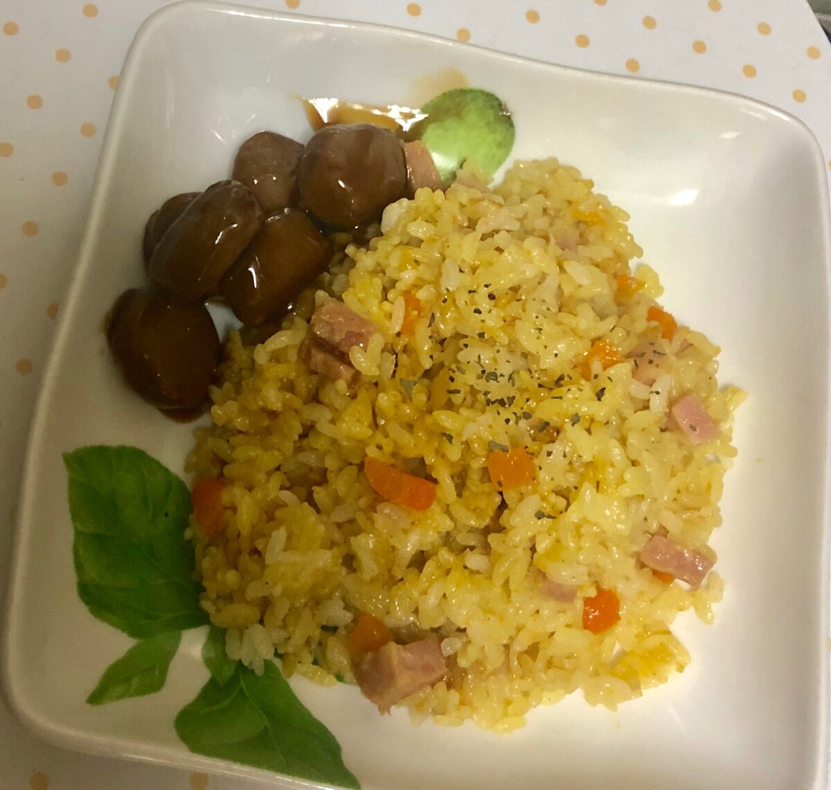 炊飯器で簡単!子供が喜ぶ、カレーピラフ 休日ランチに♡︎。