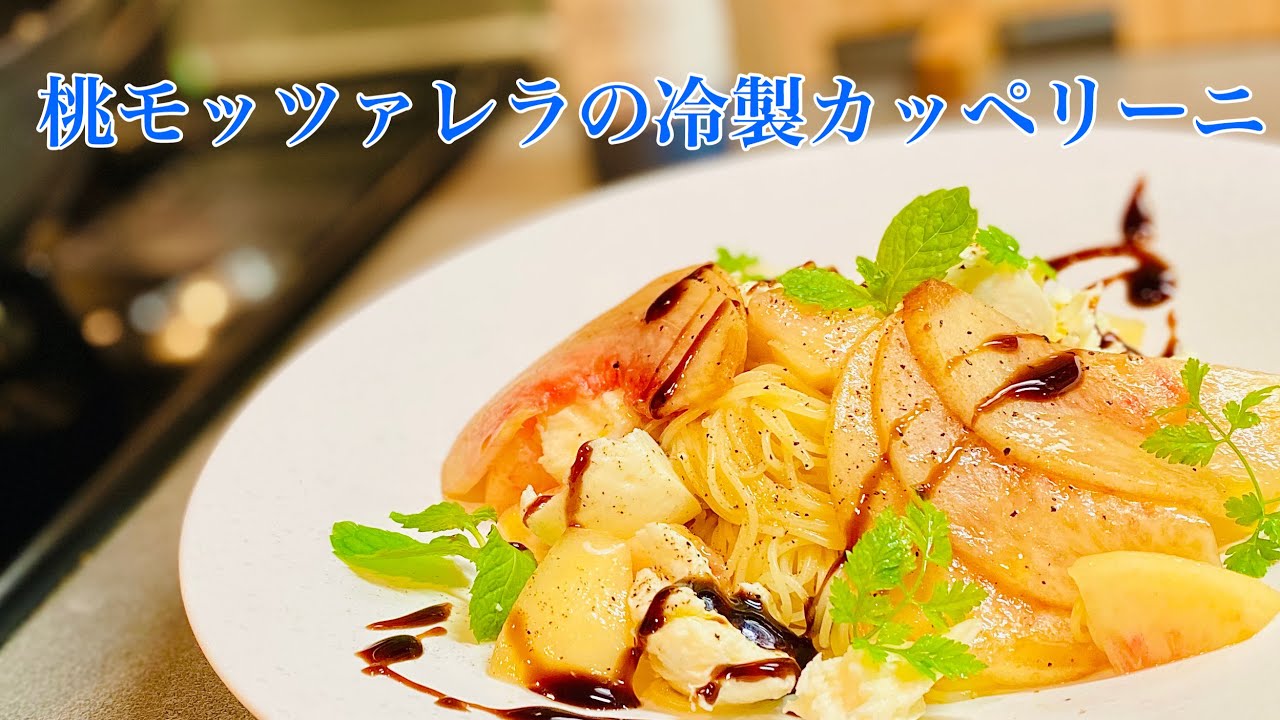 冷製パスタ 桃とモッツァレラの冷製カッペリーニの作り方❗️ - YouTube。