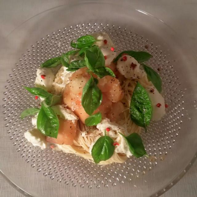 桃とモッツァレラの冷製カッペリーニ (204 無料写真)