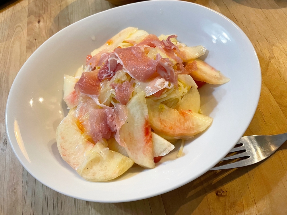 夏の風物詩 桃と生ハムのカッペリーニ・taverna LA LIBERTÀごま。