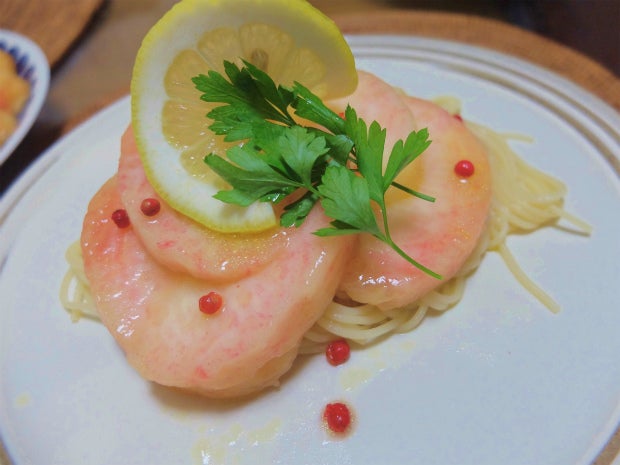 ちょっと贅沢に♡ ももの冷製パスタ。